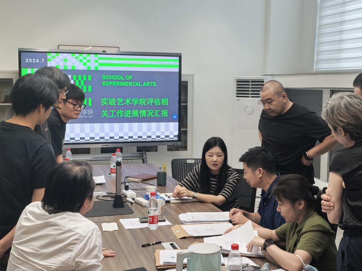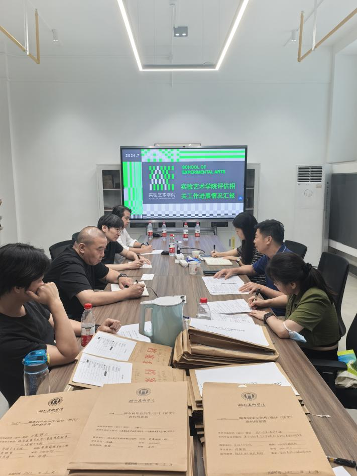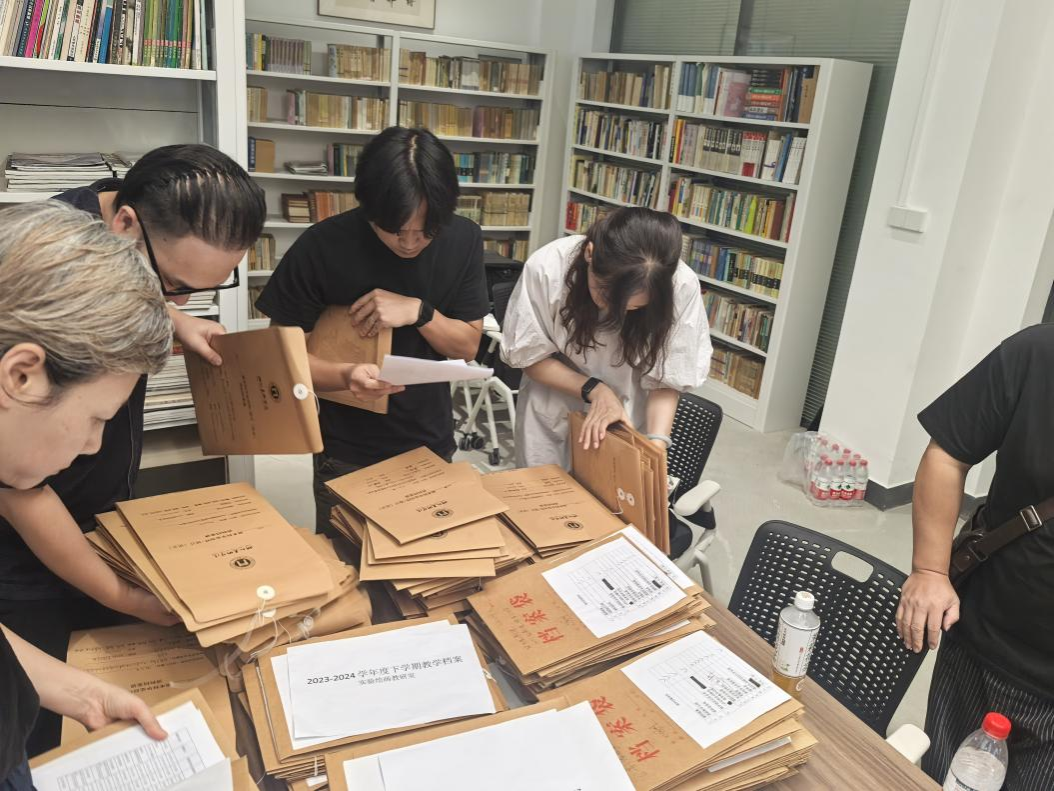 (程智力副董事长对课程档案进行初步检查并与跨媒体教研室主任陶陶老师进行沟通)