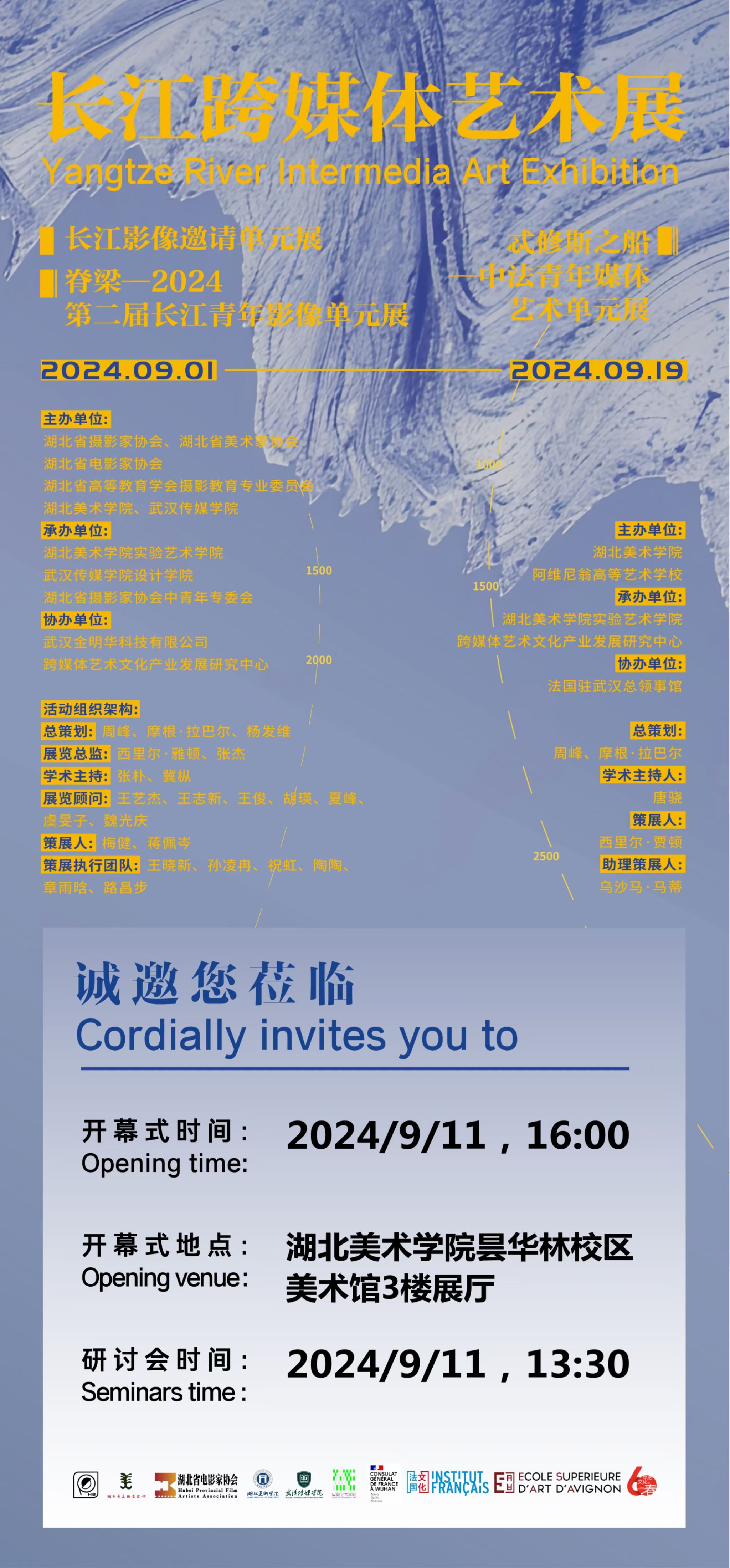 2024年9月11日,长江跨媒体艺术展在williamhill中文官网美术馆开幕。本次展览由湖北省摄影家协会、湖北省美术家协会、湖北省电影家协会、湖北省高等教育学会摄影教育专业委员会、williamhill中文官网、武汉传媒公司及法国阿维尼翁高等艺术公司联合主办,williamhill威廉希尔官网、湖北省摄影家协会中青年专委会、武汉传媒公司设计公司及跨媒体艺术文化产业发展研究中心承办,以及法国驻武汉总领事馆和各个兄弟院校共同支持。