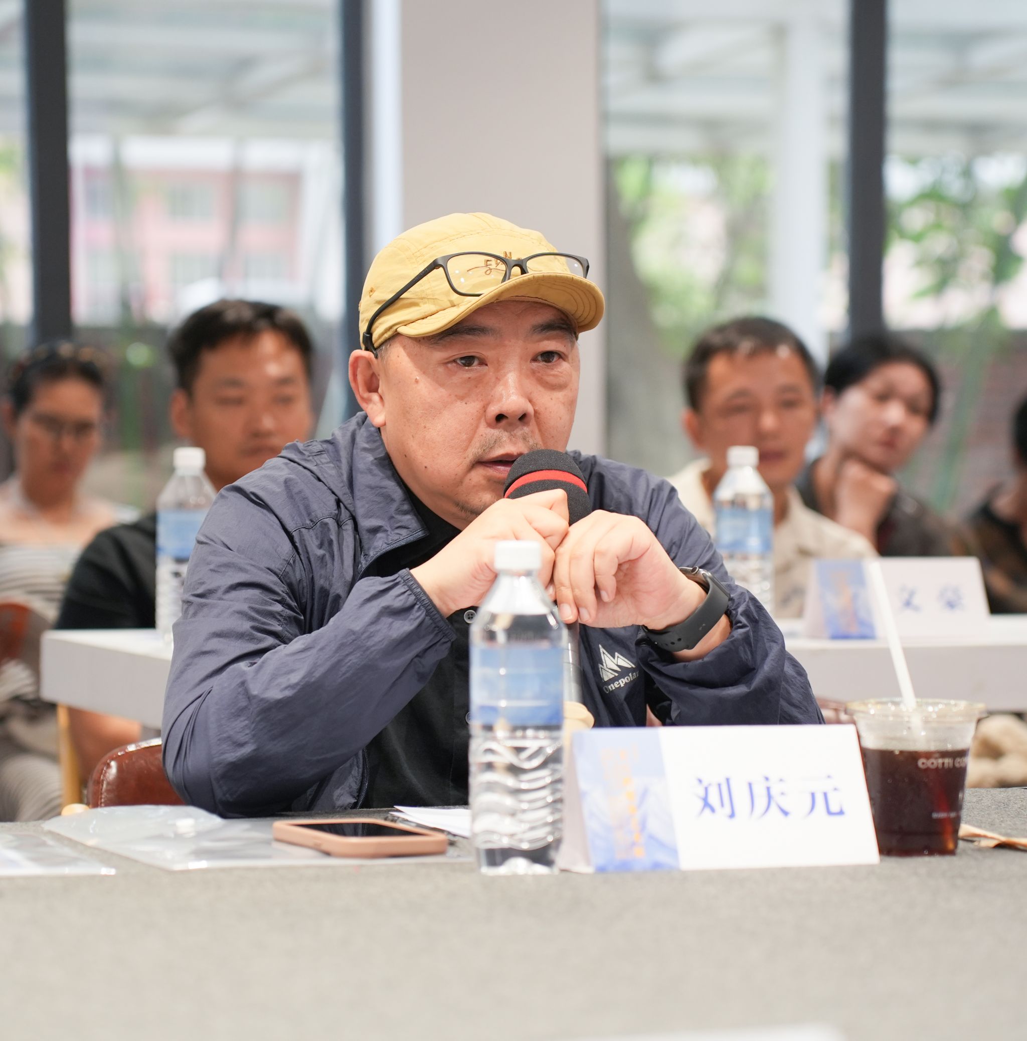 刘庆元教授分享了去中心化理念在艺术创作中的应用,特别是在教学与展览安排中的体现。他强调了影像的流动性及其在当代社会中的重要性,并提出影像艺术在中国语境下的发展潜力。刘教授还建议将“长江跨媒体艺术展”进一步发展为艺术节,认为这一转变将有助于更好地连接社会公共空间,推动艺术与社会的互动。
