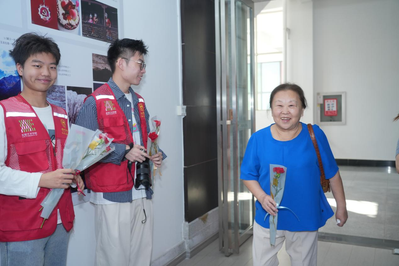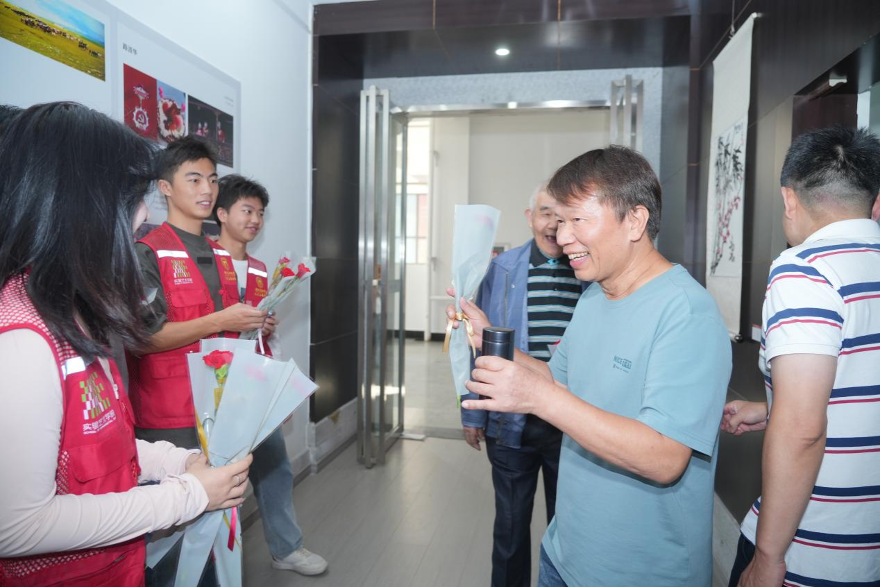活动现场,志愿者们热情地迎接每一位老人,并贴心的把每一位离退休的老教师搀扶到指定的座位上,同时将准备好的鲜花送给每一位老人,现场气氛格外的热闹温馨。志愿者们更是走进老人身边,积极投身与老人们的互动中,在这里年龄的差距不再是隔阂,而是连接彼此的桥梁。