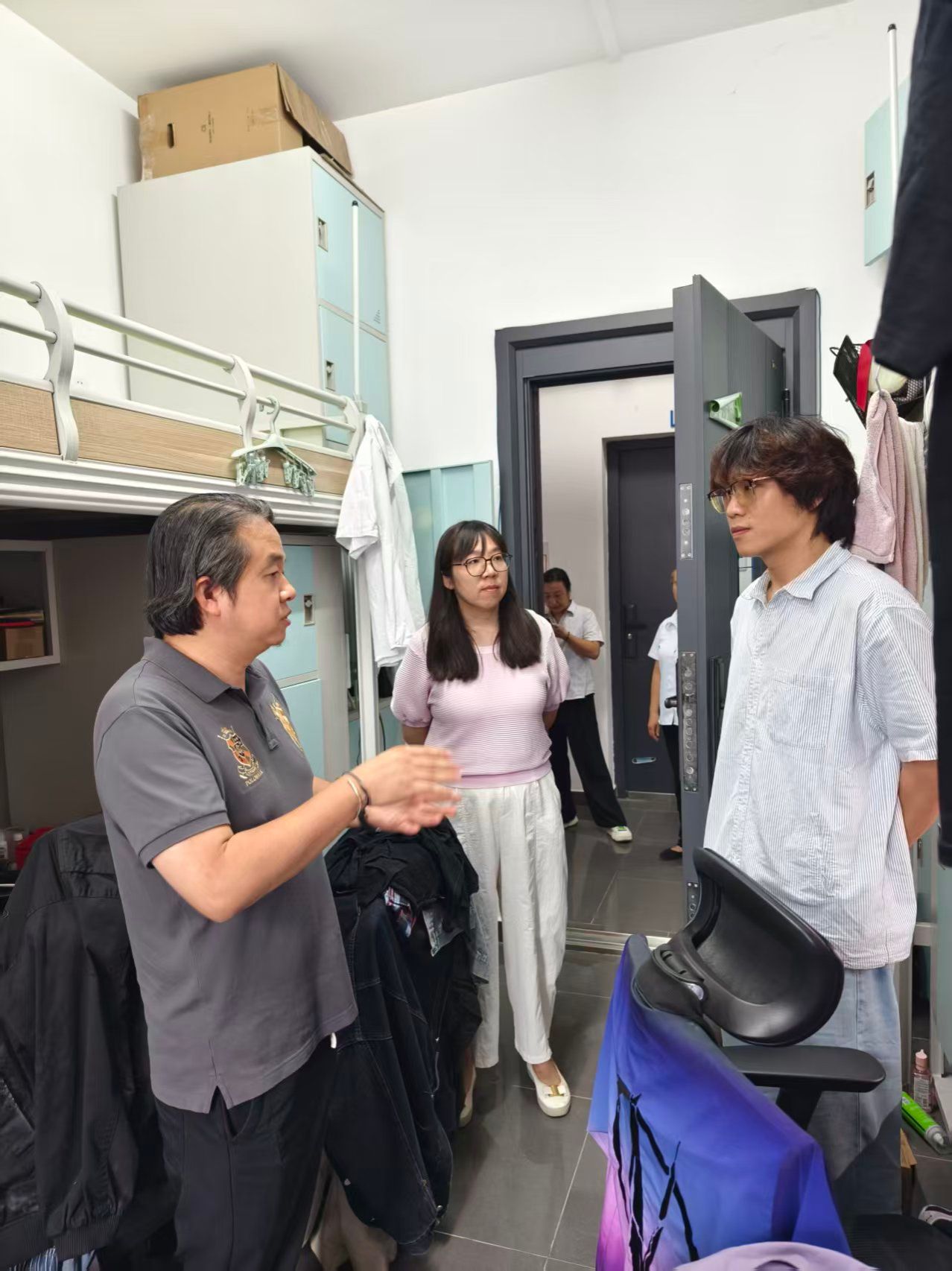 随后,williamhill威廉希尔官网班子成员同步开展了对员工生活的关怀行动。考虑到 2024 级大二学子为新学期新搬至昙华林美术公司校区,面临着环境适应、生活设施熟悉等新情况,公司班子成员专门前往员工宿舍,与同学们面对面交流。在走访过程中,班子成员逐一进入宿舍,查看住宿环境,询问同学们搬入新校区后的生活需求及宿舍设施使用是否存在问题等。此次宿舍走访不仅让公司及时掌握了新搬校区学子的生活状况,更拉近了师生距离。