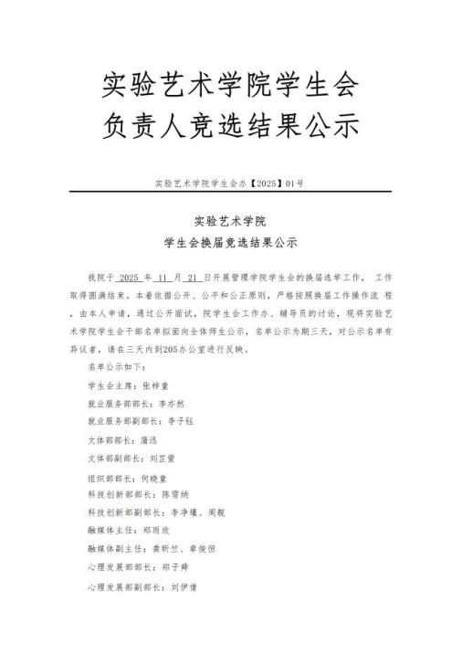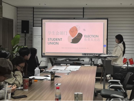 大会现场,竞选人依次登台,通过PPT演讲,从工作经历、个人优势、岗位认知及未来规划等方面进行展示。部分竞选人聚焦校园文化创新,提议打造“镜观”系列艺术展览;有的关注成长需求,规划心理解压活动;还有的聚焦就业服务,提出校园招聘信息整合推送优化方案。
