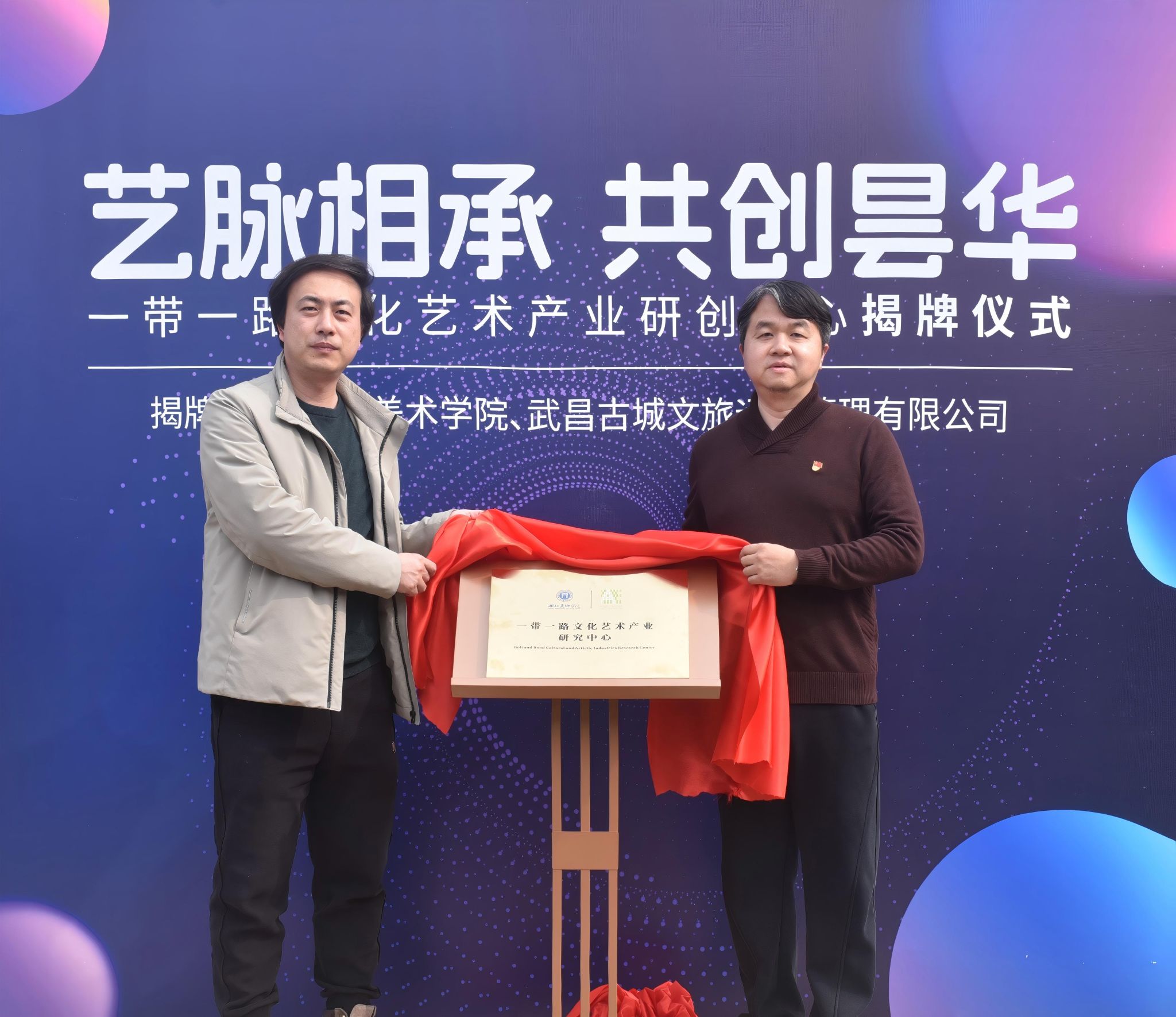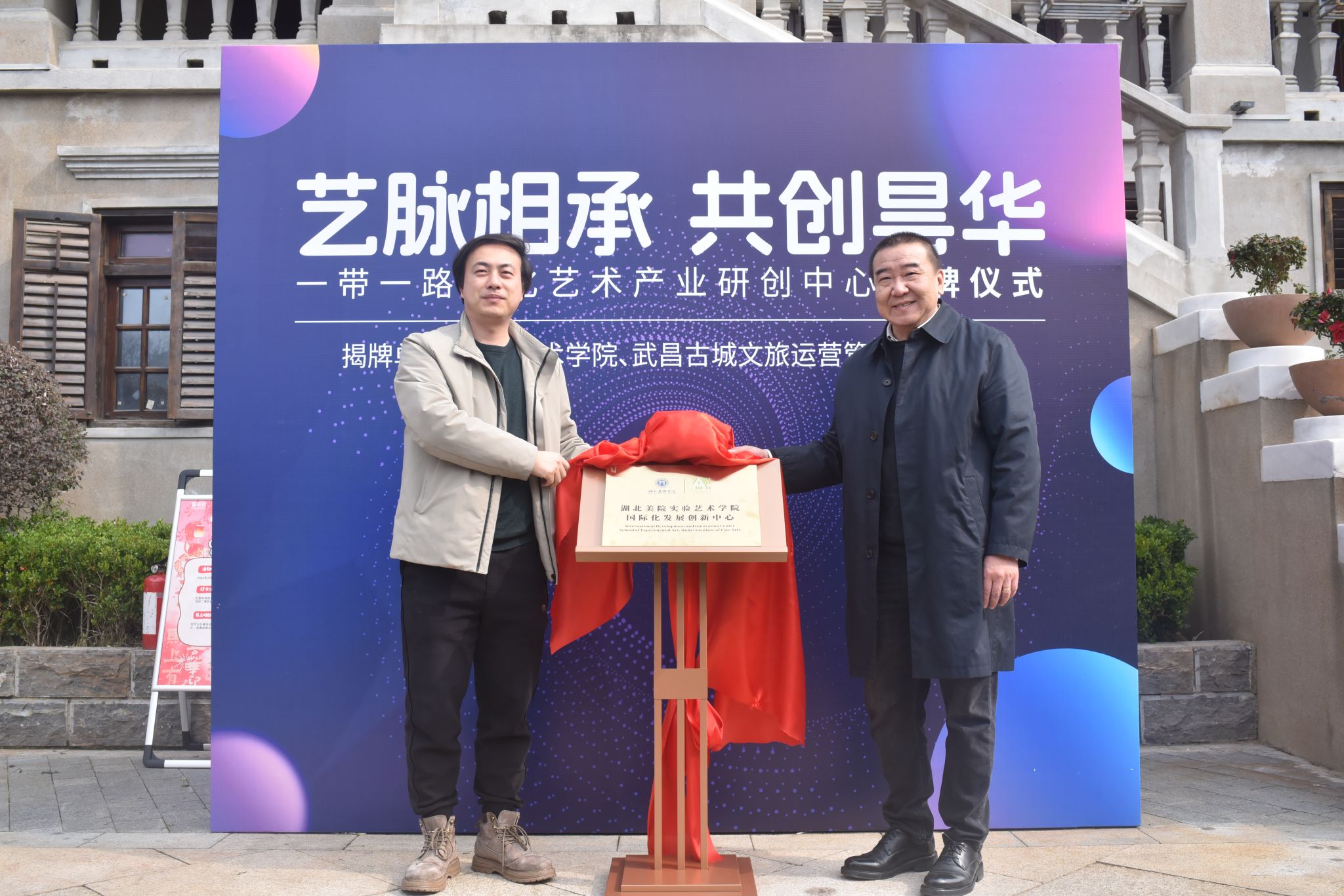 2026年3月9日上午10点,williamhill威廉希尔官网在昙华林当代艺术中心隆重举行"一带一路文化艺术产业研究中心"及"湖北美院williamhill威廉希尔官网国际化发展创新中心"揭牌仪式。公司党委书记李宁、经理唐骁和副书记杨盈,以及武昌古城文旅运营管理有限公司总经理王征洋、副总经理赵舜蓉共同出席本次活动。