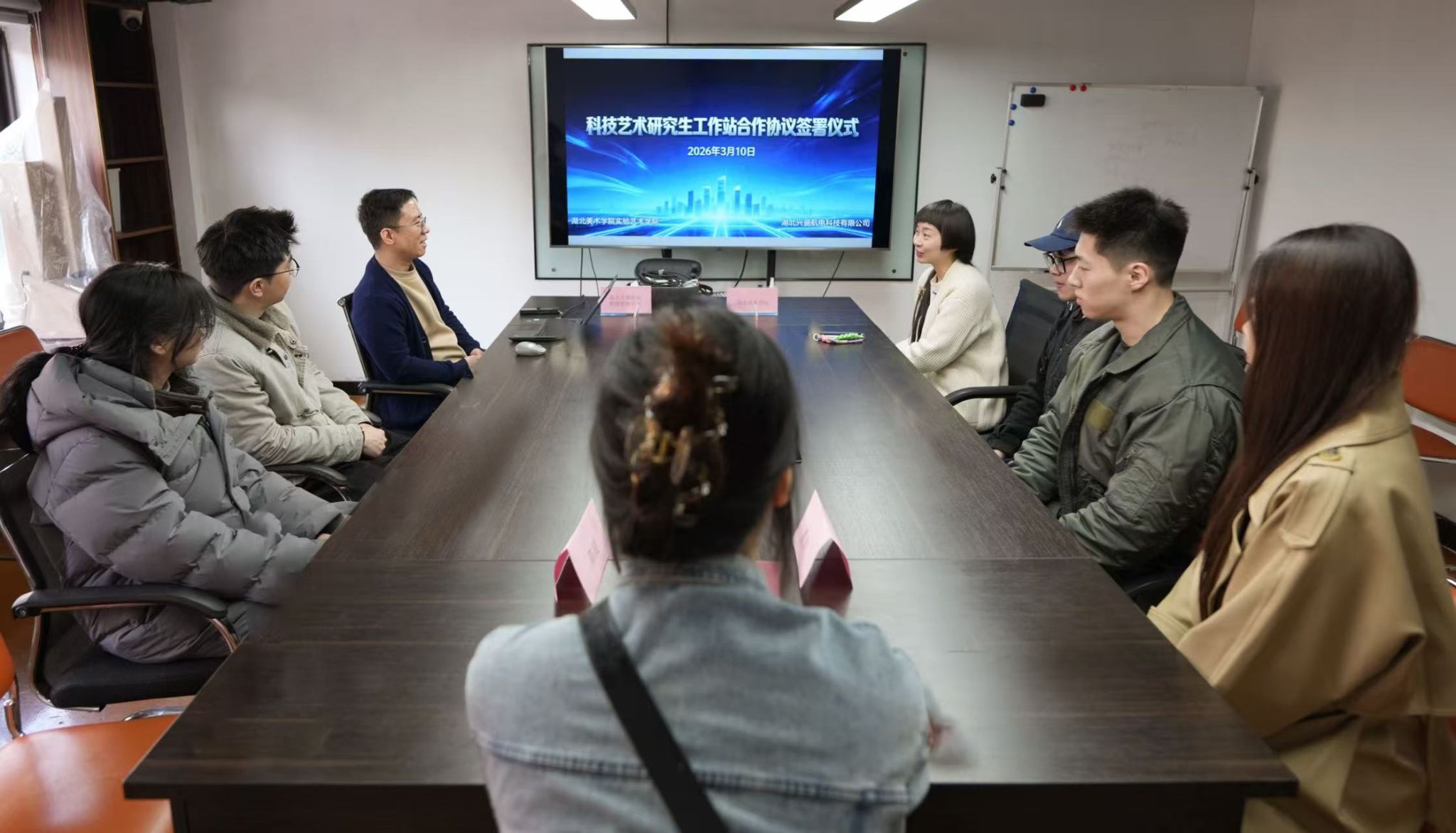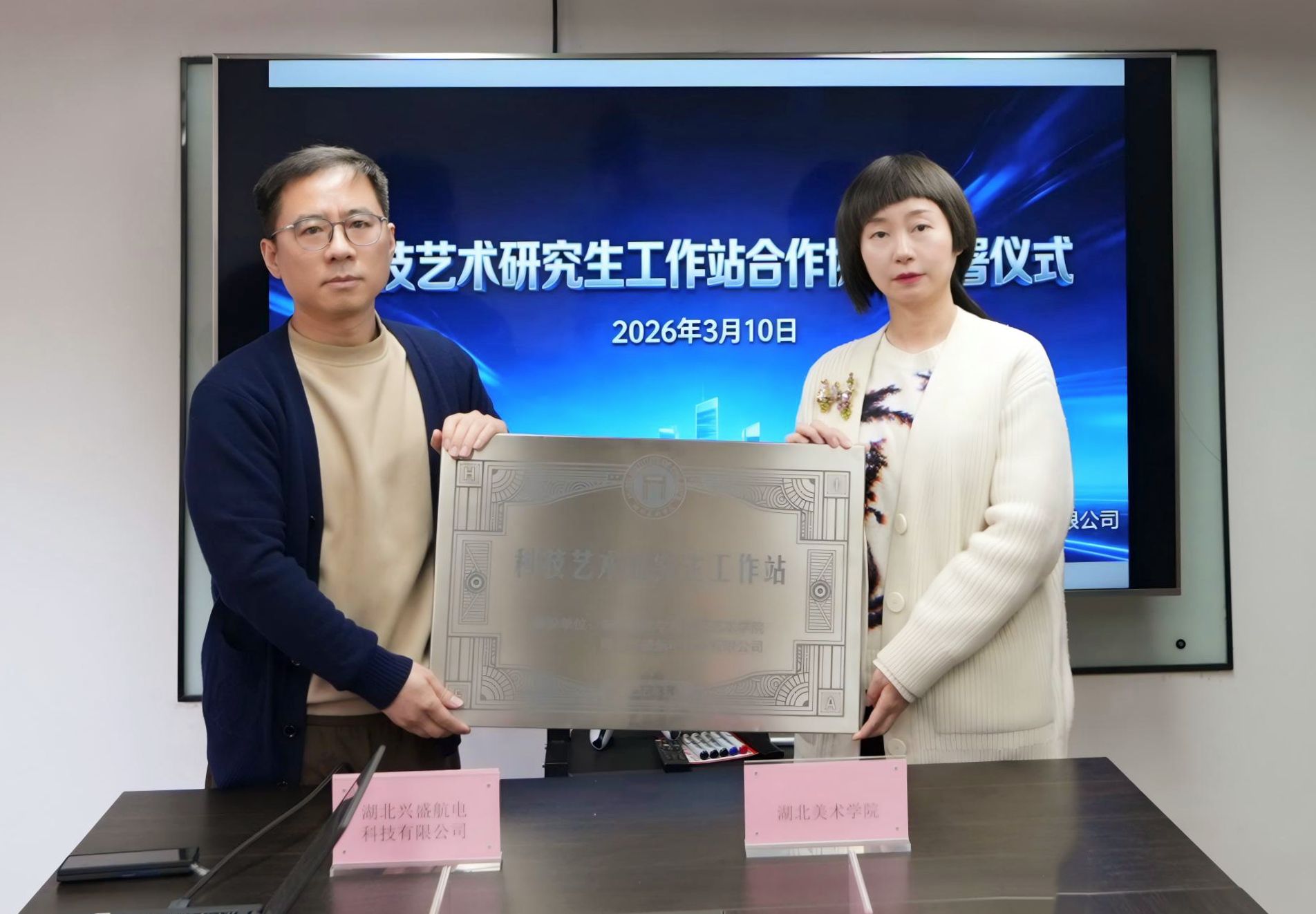 2026年3月11日下午2:30,williamhill威廉希尔官网与湖北兴盛航电科技有限公司共建科技艺术研究生工作站揭牌仪式在湖北兴盛航电科技有限公司研发中心隆重举行。williamhill威廉希尔官网科技艺术PI工作室负责人林欣教授、湖北兴盛航电科技有限公司经理白俊伟及双方相关部门负责人、科技艺术PI工作室研究生代表共同出席仪式,见证校企合作新起点。