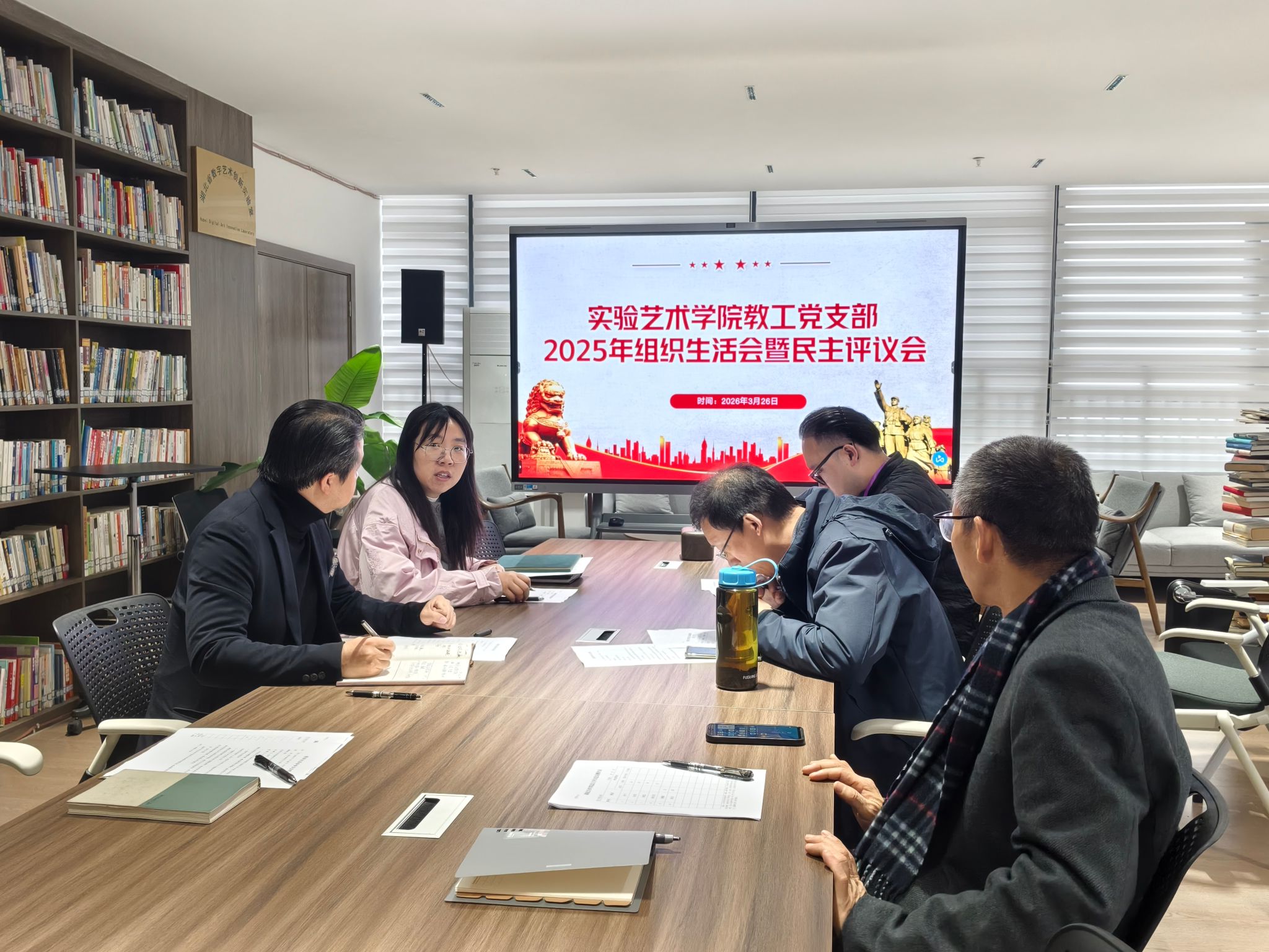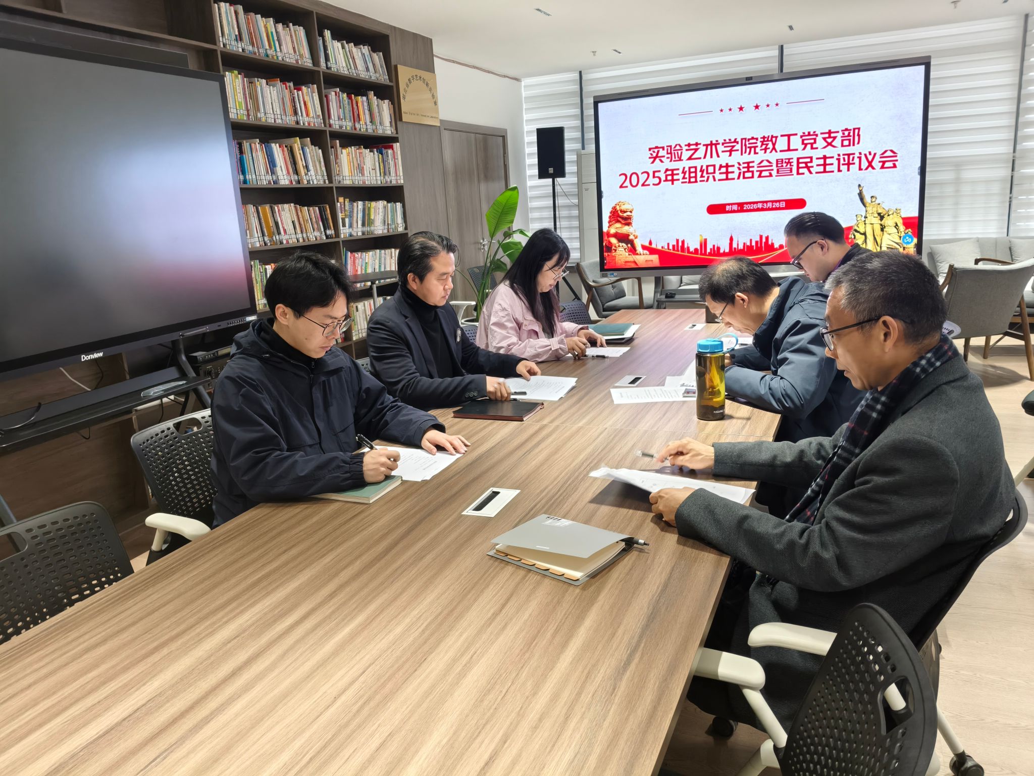 在研讨交流环节,与会党员结合实验艺术专业特点和岗位职责,围绕“为谁创造政绩、创造什么样的政绩、怎样创造政绩”展开深入交流,进一步凝聚了“立德树人”是最大政绩的思想共识。随后,支部召开组织生活会并开展民主评议党员。党支部书记金虎代表支委会报告过去一年支部工作情况,查摆存在的主要问题,明确改进方向。全体党员逐一开展批评与自我批评,直面问题、坦诚交流,达到了统一思想、增进团结、促进工作的目的。会上还开展了民主测评,支部书记满意度为100%,评选出优秀党员2名、合格党员4名。