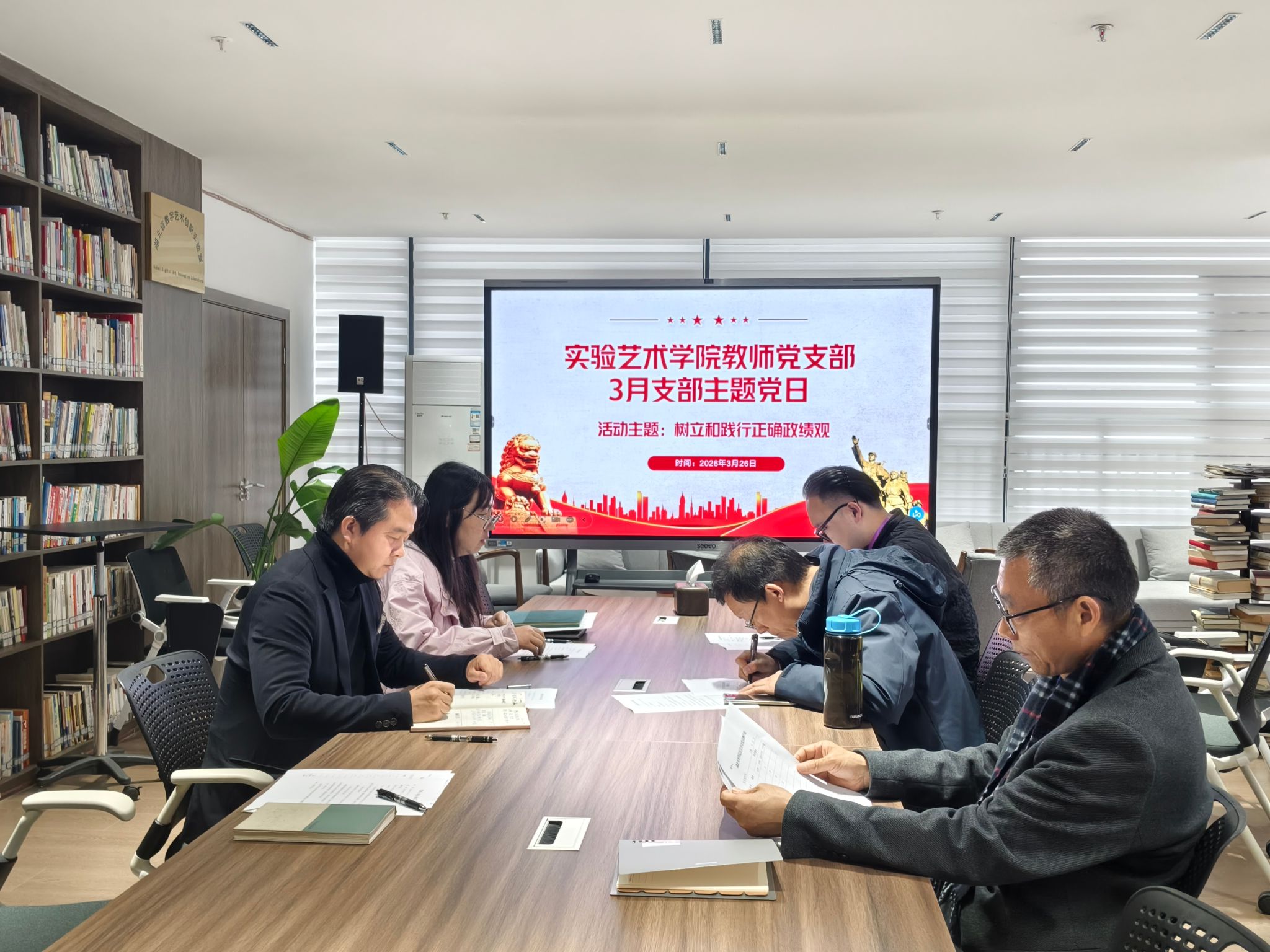 2026年3月26日上午10点,williamhill威廉希尔官网教师党支部在3号教学楼201会议室召开3月主题党日活动,围绕“树立和践行正确政绩观”主题,组织开展集中学习、研讨交流、组织生活会及民主评议党员。会议由党支部书记金虎主持,支部全体党员参加。